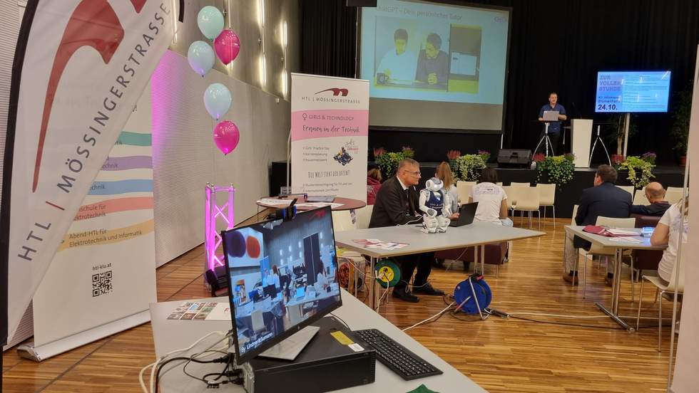In der St. Veiter Blumenhalle präsentierte die Abteilung „Elektronik und Technische Informatik“ und Professor Gernot Opriessnig mit den Schülerinnen und Schülern der 3AHEL und 4BHEL selbst entwickelte KI-Tools.