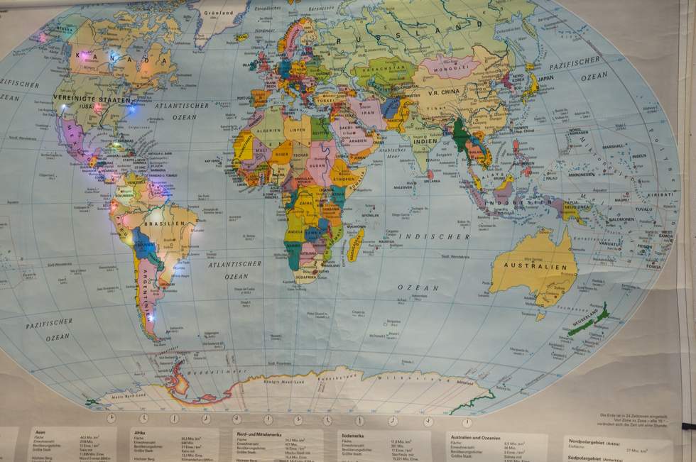 Durch die Eingabe des Ländernamens im Java-Programm wird eine Information zu einem Arduino weitergeleitet, welcher die Signale an die LEDs sendet. Die entsprechenden LEDs beginnen zu leuchten und falls gewünscht, kann man im Java-Code eine beliebige Farbe für das jeweilige Land eintippen.