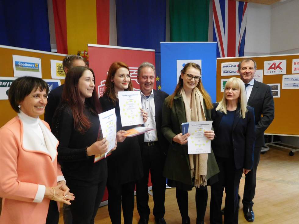 Bei der Siegerehrung, die von den Spitzen des Landesschulrates, angeführt von Landesschulratspräsident Rudolf Altersberger durchgeführt wurde, durfte sie sich neben Sachpreisen vor allem über die besondere Gratulation durch LSI Dr. Axel Zafoschnig freuen.