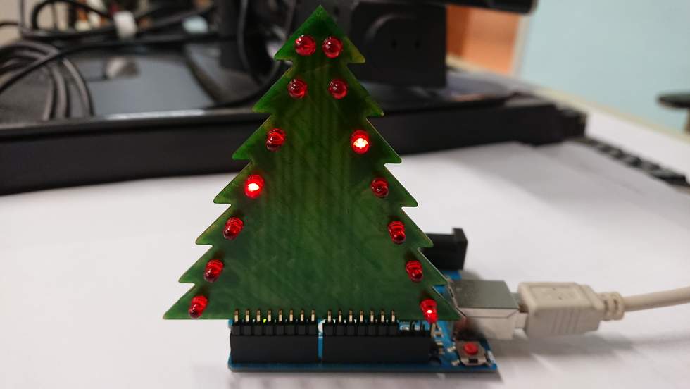Der myXmasTree wird an einen Arduino Uno angesteckt über den die einzelnen LEDs angesteuert werden können.