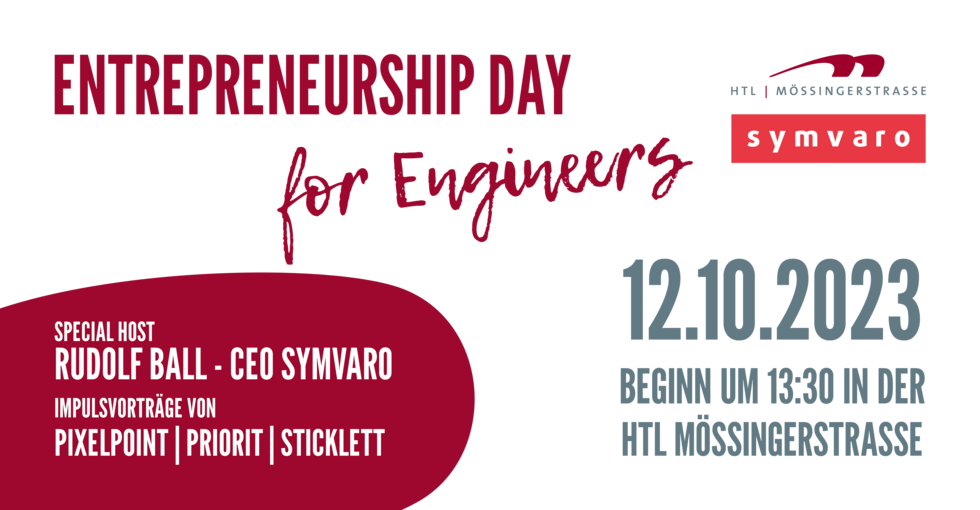 Erstmalig findet heuer ein Entrepreneurship-Day statt. Dabei soll unter der Schirmherrschaft von Prof. Mag. Birgit Gaugg-Tsallis und dem CEO der Firma Symvaro Rudolf Ball unseren Schülerinnen und Schülern das "Unternehmertum " nähergebracht und wohl auch schmackhaft gemacht werden.